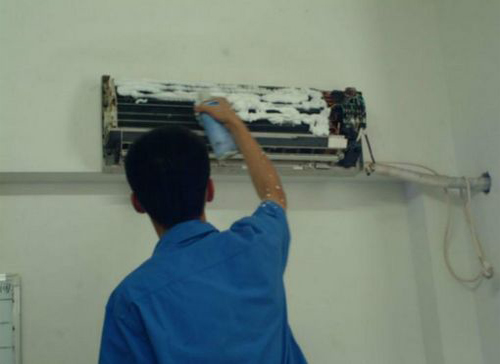 | 卫东空调维修师傅给卫东用户上门维修清洗空调。 |